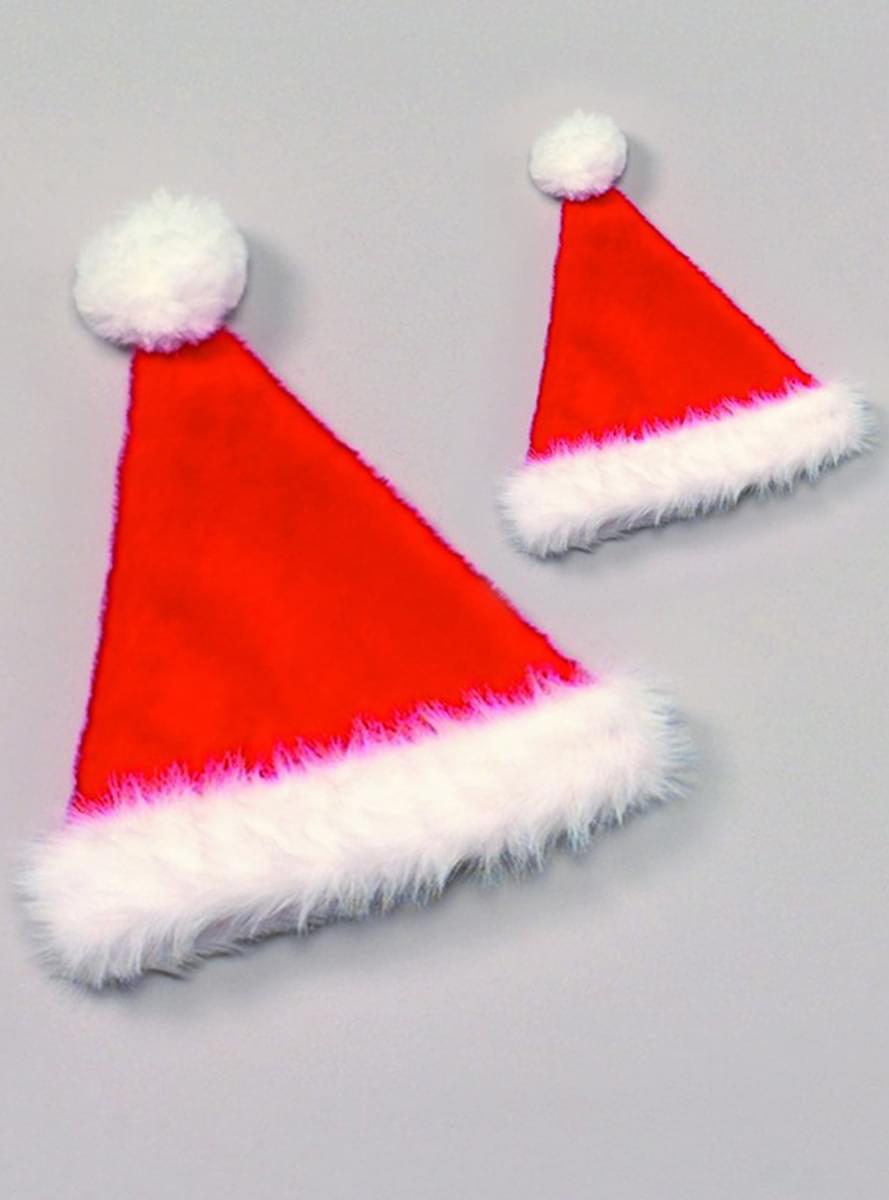 Includes a Santa hat made of deluxe red plush with a band of white plush fur and a pompom on top.
