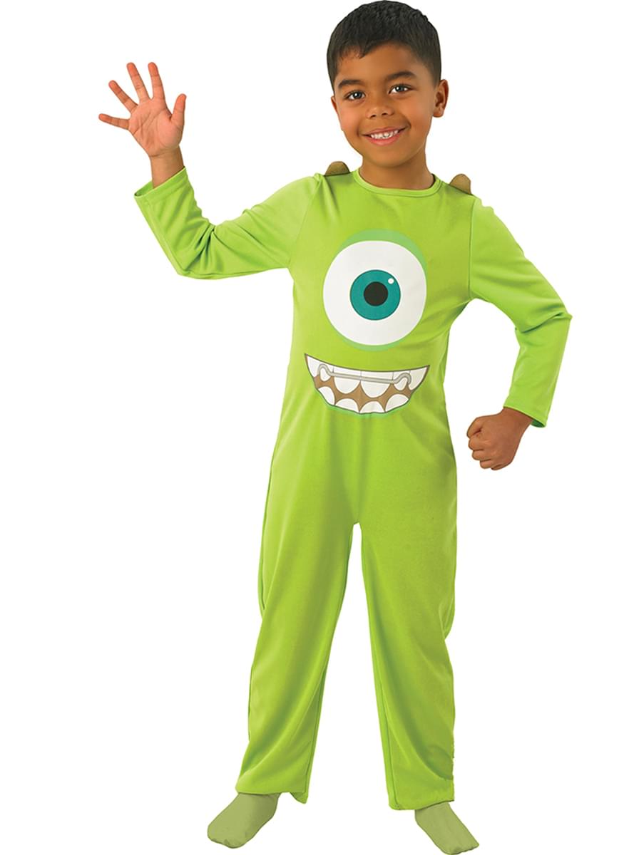 Includes a pistachio green jumpsuit with a blue eye and a mouth with braces.