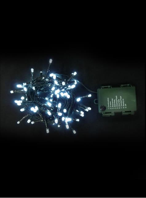 Includes: 11.2 m string lights with 144 cool white LED lights and 8 function controller. Powered by 3 AAA batteries.